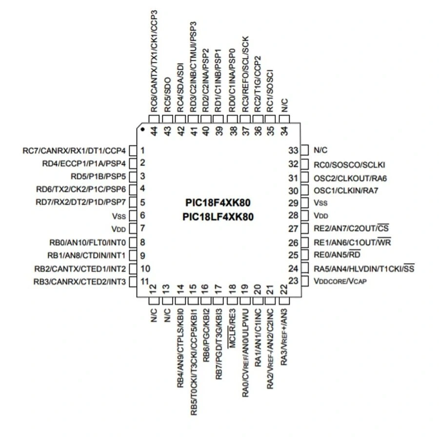 PIC18F45K80-I/PT yüzey montaj bileşeni olduğundan, PCB tasarımı ve SMD lehimleme gerektirir. Temel bağlantı gereksinimleri: