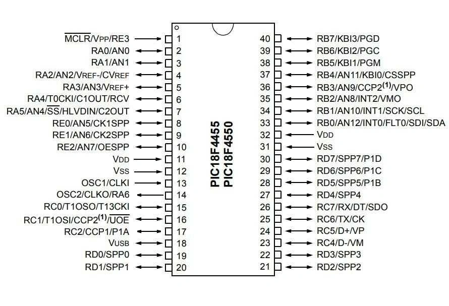 PIC18LF4550-I/P DIP-40 48MHz Mikrodenetleyici