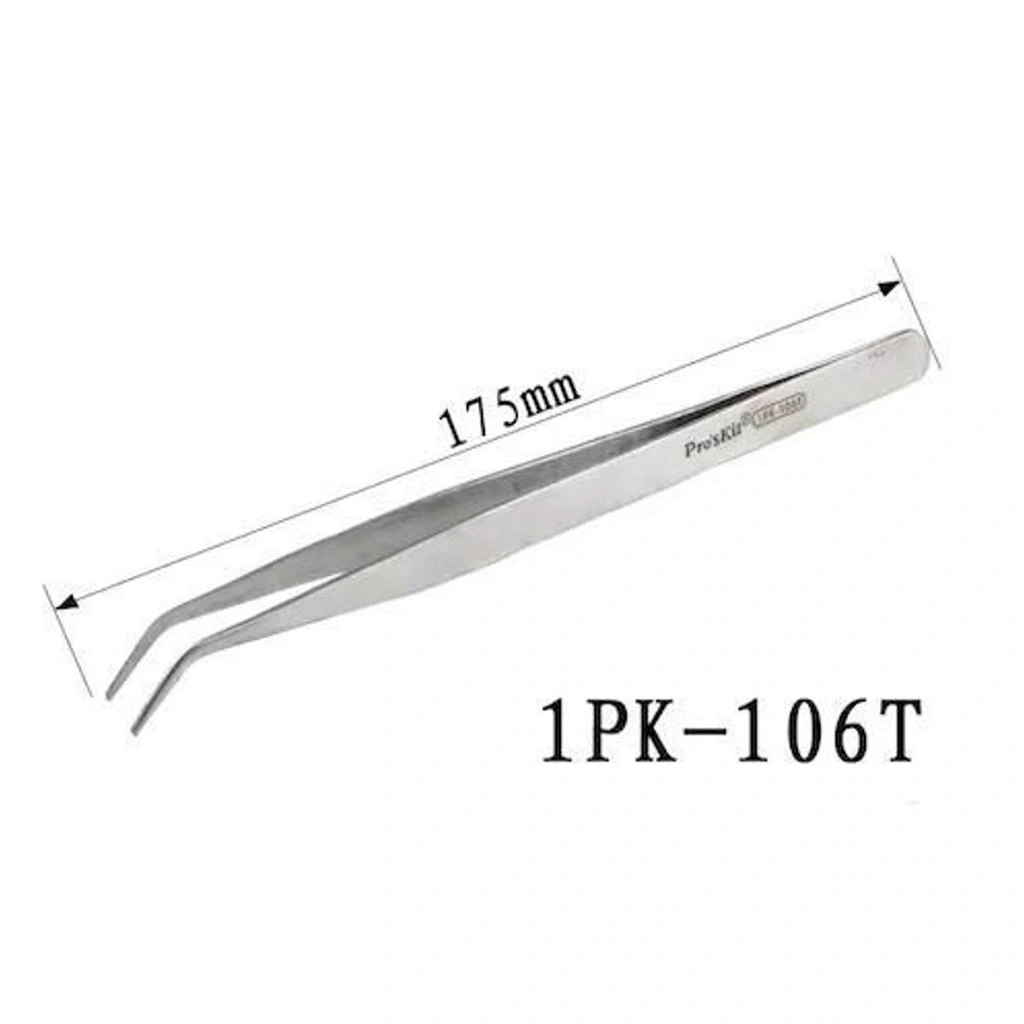 Yüksek kaliteli paslanmaz çelik malzemeden üretilen ve özel antistatik kaplamayla donatılan bu cımbız, uzun ömürlü ve güvenilir bir kullanım sağlar. El aletleri kategorisinde yer alan profesyonel elektronik aletlerden biri olan 1PK-106T, hassas elektronik devre montajı ve tamiri için idealdir.