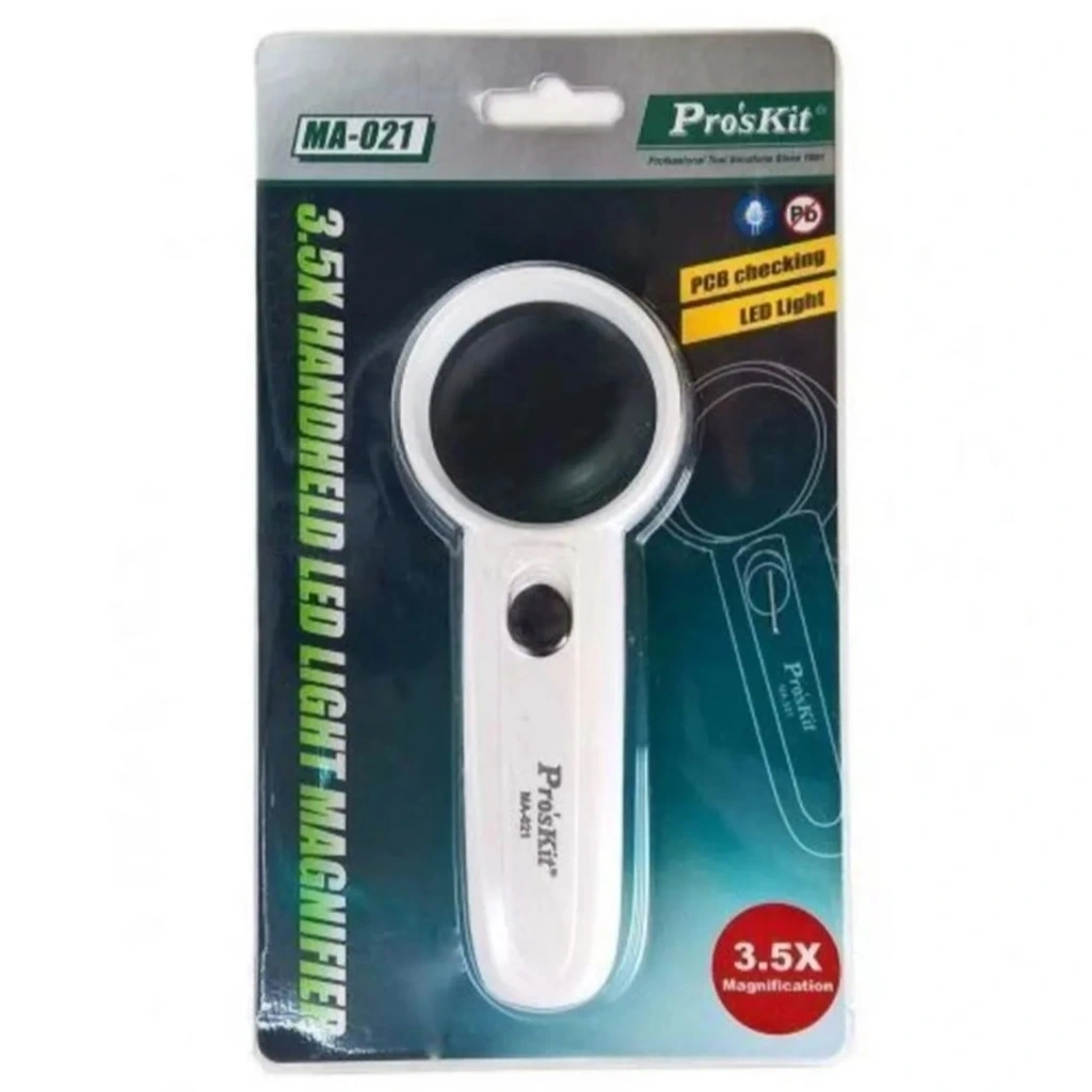 Proskit MA-021 LED Işıklı El Tipi Büyüteç, elektronik devre montajı, hassas parça incelemeleri ve küçük detayları görüntüleme gerektiren işler için tasarlanmış profesyonel bir büyüteçtir. Entegre LED ışık sistemi sayesinde, az ışıklı ortamlarda bile inceleme yapmayı kolaylaştırır ve parlamasız, net bir görüntü sunar.