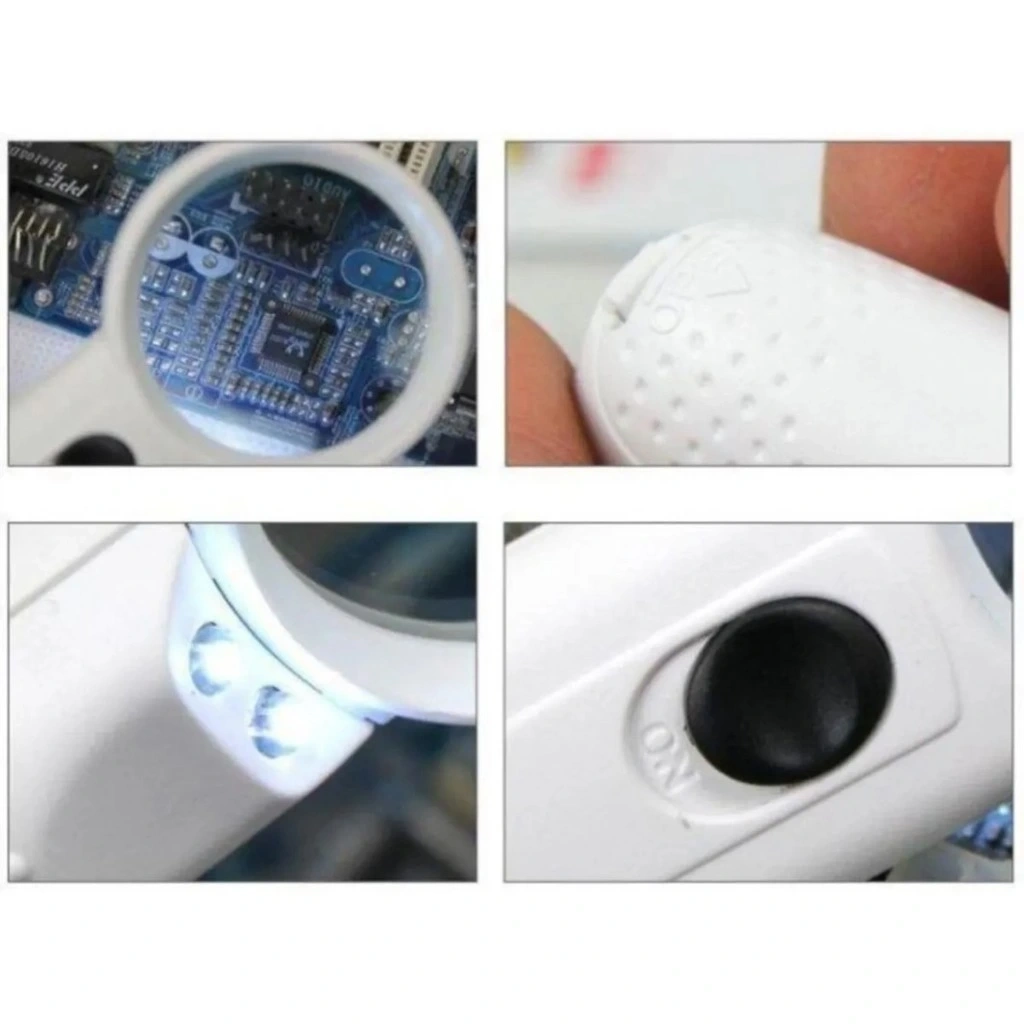 - Büyütecin yan tarafındaki düğmeye basarak LED ışıkları açın