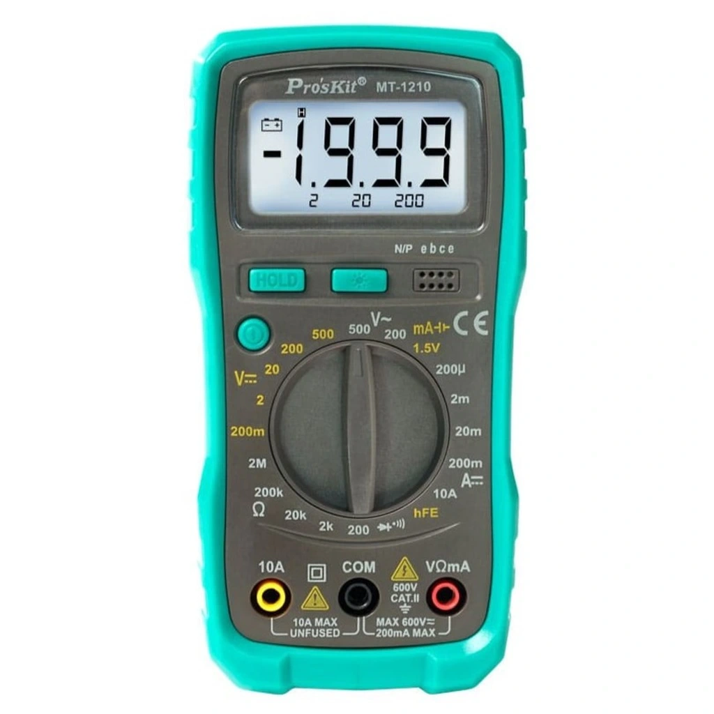 ProSkit MT-1210, günlük elektrik ve elektronik ölçümler için tasarlanmış kompakt ve kullanıcı dostu bir dijital multimetredir. 3 1/2 dijit LCD ekranı ile 2000 count çözünürlük sunan bu cihaz, hem hobi elektronikçileri hem de profesyoneller için temel ölçüm ihtiyaçlarını karşılayacak özelliklere sahiptir.