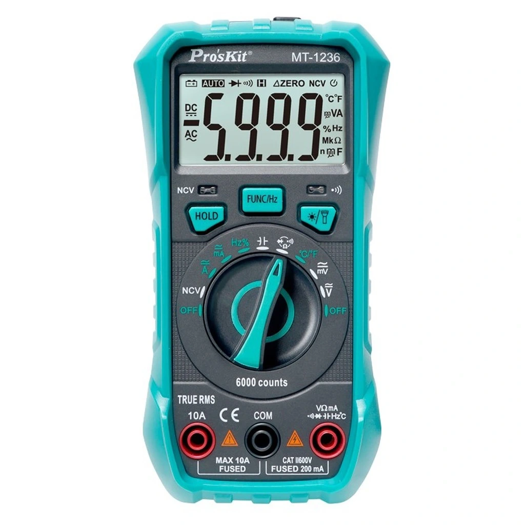 Proskit MT-1236 Dijital Multimetre Ölçü Aleti, temel elektrik ve elektronik ölçümler için tasarlanmış kompakt ve kullanımı kolay bir multimetredir.