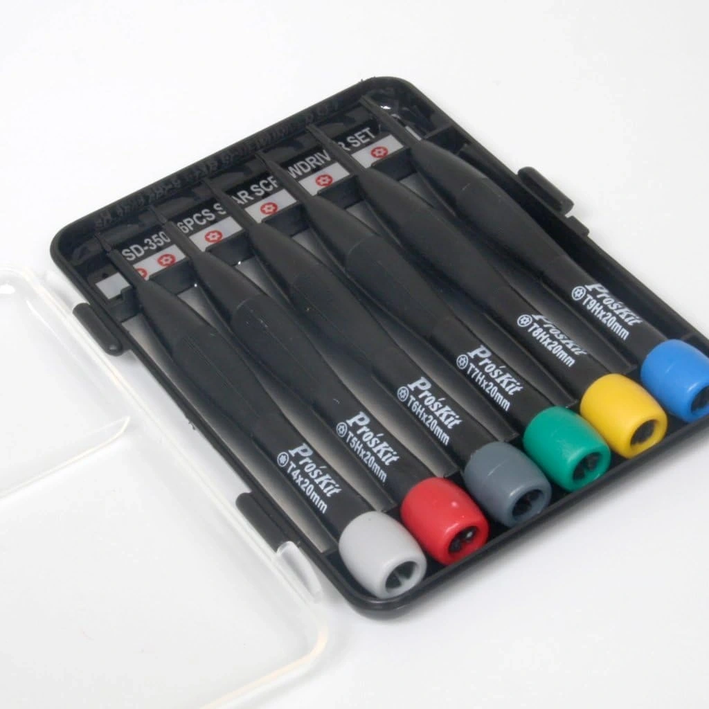 Pro'skit SD-3502 6 Parça Tork Tornavida Seti, hassas elektronik cihazlar, saat mekanizmaları ve optik ekipmanlar gibi belirli tork değerlerinde sıkılması gereken vidalar için tasarlanmış profesyonel bir alettir.