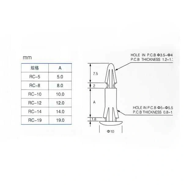 RC-14 Plastik Tırnaklı Distans İletken olmayan PCB aralayıcıları, PCB ile kasa veya PCB ile PCB arasında gerekli boşluğu sağlamak için tasarlanmıştır. Daha düşük montaj maliyetleri için bir geçmeli sabitleme yöntemine sahiptir ve bakım veya ekipman modifikasyonları için geniş erişime izin verir. Sadece panoya oturtularak kolayca monte edilir..