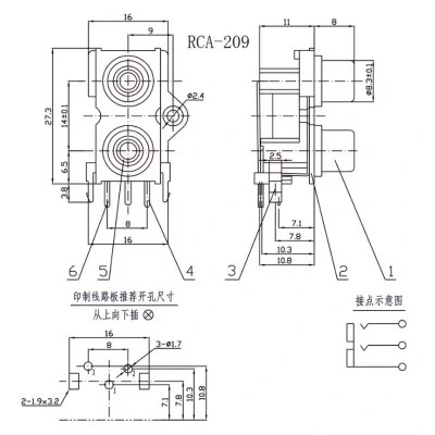 RCA-209 3.5mm Stereo RCA Jack Dişi - PCB Tip, RCA konnektörü ses ve video sinyali taşımasında kullanılan konnektör türlerinden biridir.