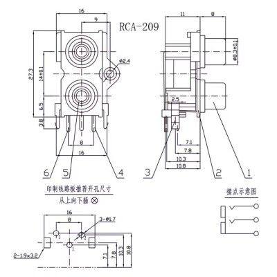 RCA-209 3.5mm Stereo RCA Jack Dişi - PCB Tip