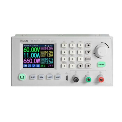 RD6012 0-60V 12A Dijital Ayarlanabilir Güç Kaynağı. %95 çıkış verimliliğine sahip 0-60 arası Voltaj ve 12 ampere kadar çıkış verebilen dijital ekranlı ayarlı güç kaynağıdır.