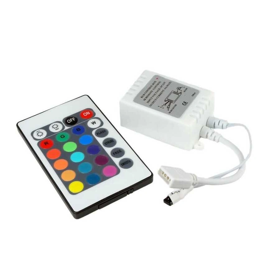 Rgb Şerit Led Kumandası 6A 24 Butonlu 5-10 metre arası rgb şerit ledleri kontrol edebileceğiniz led sürücü (driver) devresi. Daha uzun mesafeler için araya yükseltici eklenmesi gerekir. Rgb şerit ledlerin istenilen renklerde yanmasını ve renklerin kumanda ile kontrol edilebilmesini sağlar. Teknik Özellikler: Çalışma Voltajı: 12V Akım: 6A Güç: 72W Frekansı: 50HZ.