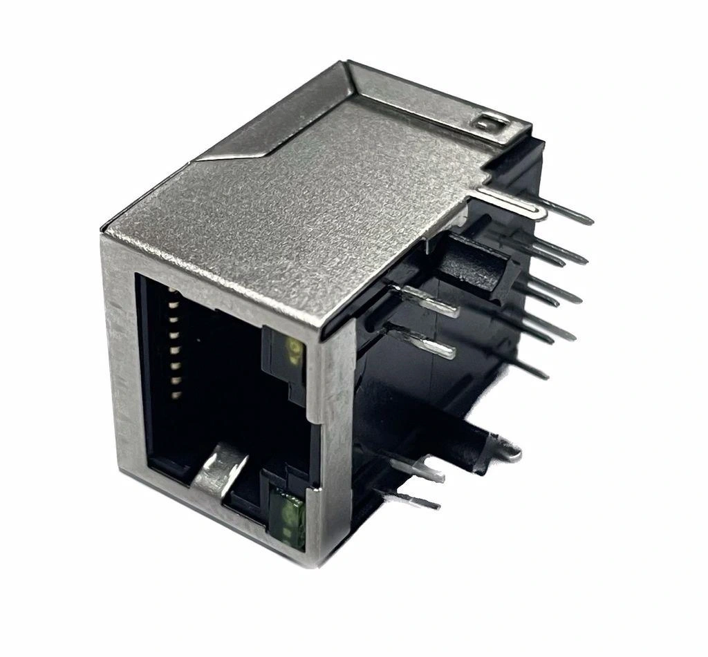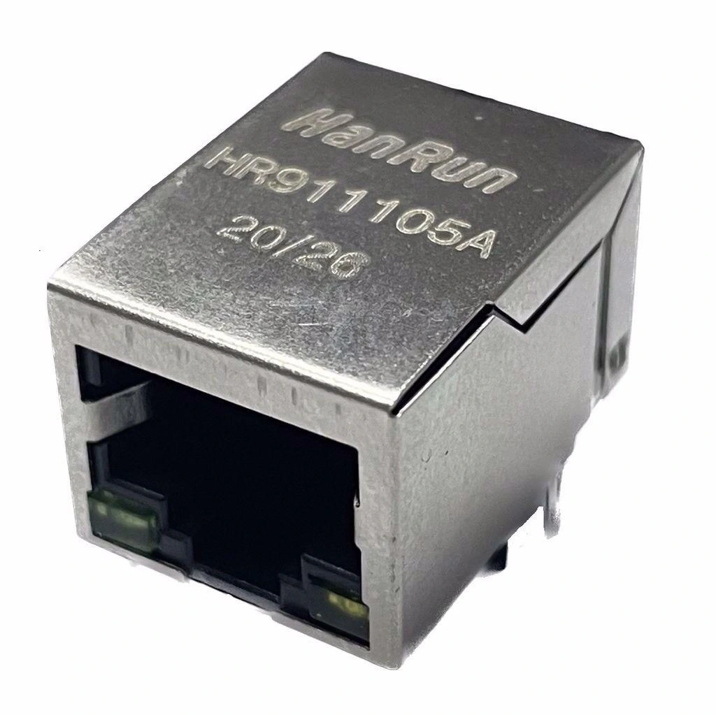 RJ45 HR911105A, Hanrun Electronics tarafından üretilen entegre transformatörlü (trafolu) ve LED göstergeli Ethernet bağlantı soketidir. 10/100 Base-T Ethernet bağlantıları için tasarlanmış bu kompakt modül, PCB montajlı yapısı ile ağ donanımları ve çeşitli iletişim cihazlarında kullanım için idealdir.