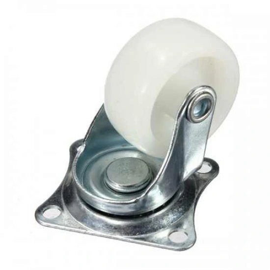 Teker tabanındaki iki montaj deliği (20mm aralıklı) kullanılarak vida ile şasiye sabitlenir. Dengeli hareket için doğru konumlandırma önemlidir.