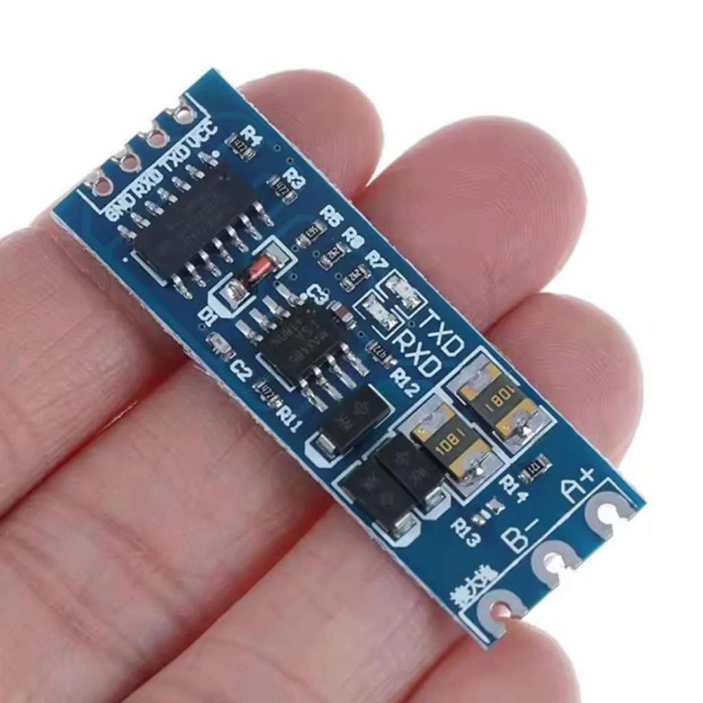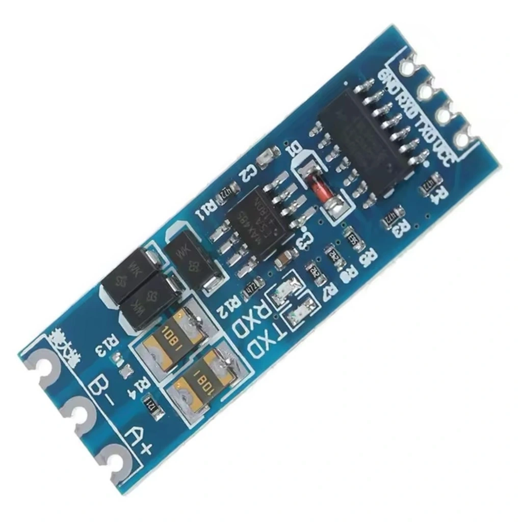 RS485 – TTL UART Dönüştürücü Modülü, mikrodenetleyiciler ve bilgisayarlar gibi cihazların RS485 tabanlı endüstriyel haberleşme sistemlerine bağlanmasını sağlar. Bu modül, TTL seviyesindeki UART sinyallerini RS485 diferansiyel sinyallerine dönüştürerek uzun mesafeli ve kararlı veri iletimine olanak tanır. MAX485 ya da benzeri entegre devre kullanılarak tasarlanan bu dönüştürücü, düşük güç tüketimi ve yüksek gürültü bağışıklığı sunar.