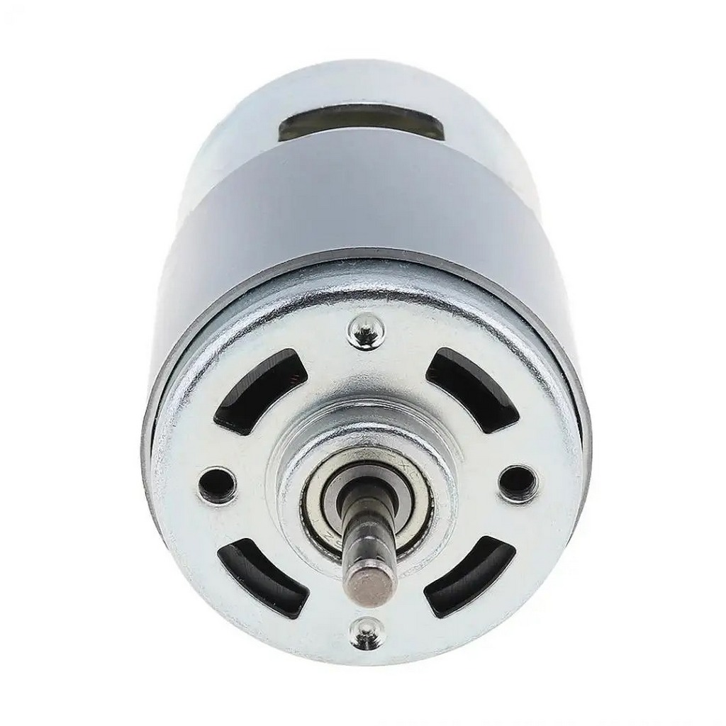 Bu motor, RS775 modeli olarak bilinen bir DC motor tipidir. 24V besleme gerilimi ile çalışır ve 12000 devir/dakika (RPM) hızında dönüş yapabilir. Genellikle robotik projeler, otomasyon sistemleri, elektrikli araçlar ve diğer endüstriyel uygulamalarda kullanılır.