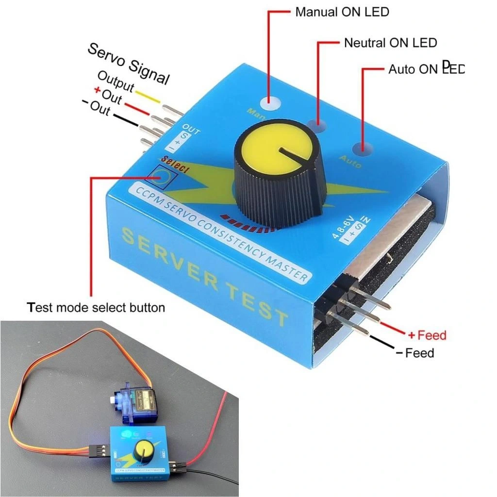 RC modeller, robot projeleri ve mekatronik sistemler için ideal olan bu test cihazı, Arduino veya diğer mikrodenetleyicilere bağlamadan önce servo motorlarınızın durumunu kontrol etmenize olanak sağlar.