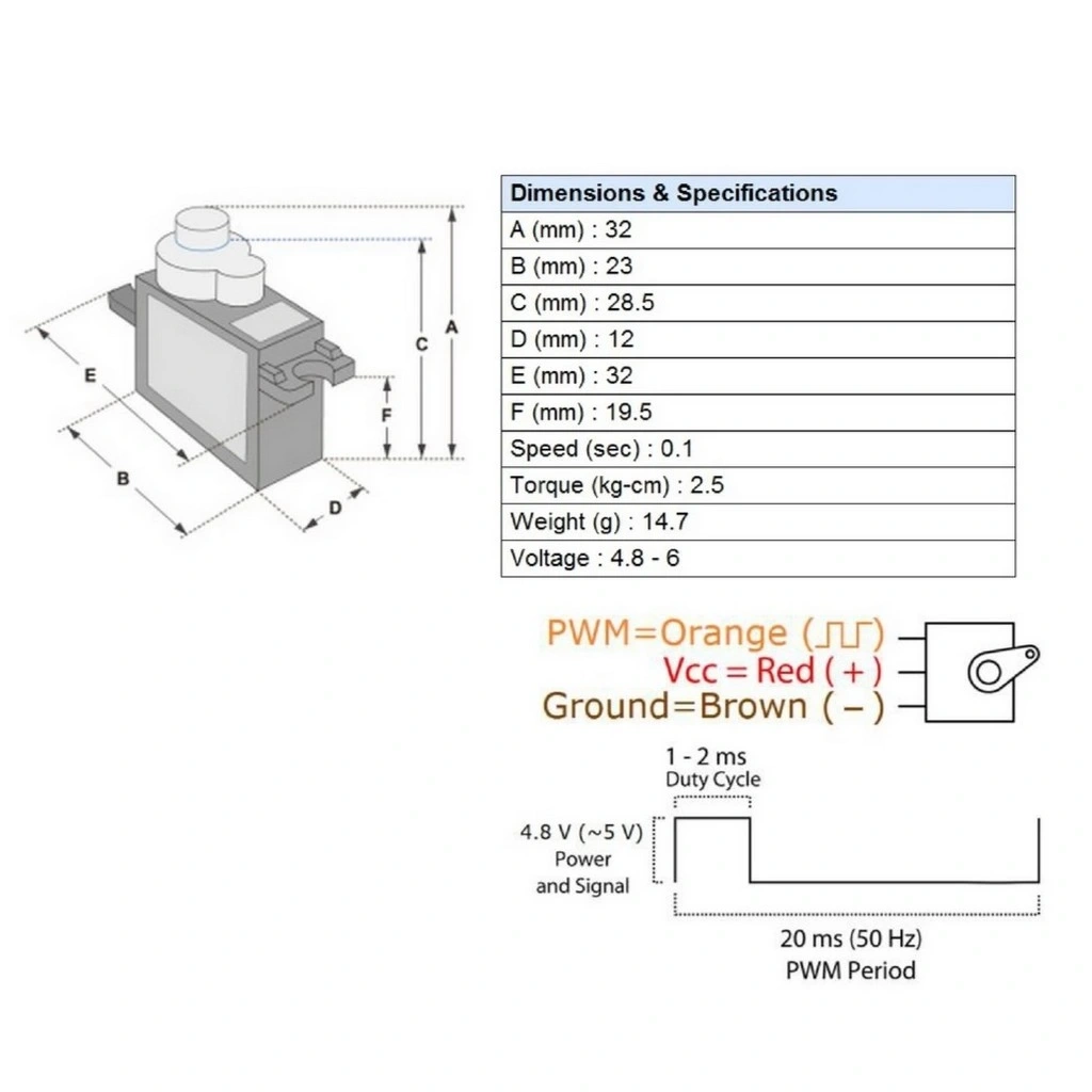 SG90 RC Mini Servo Motor'un bağlantı ve kurulum bilgileri.