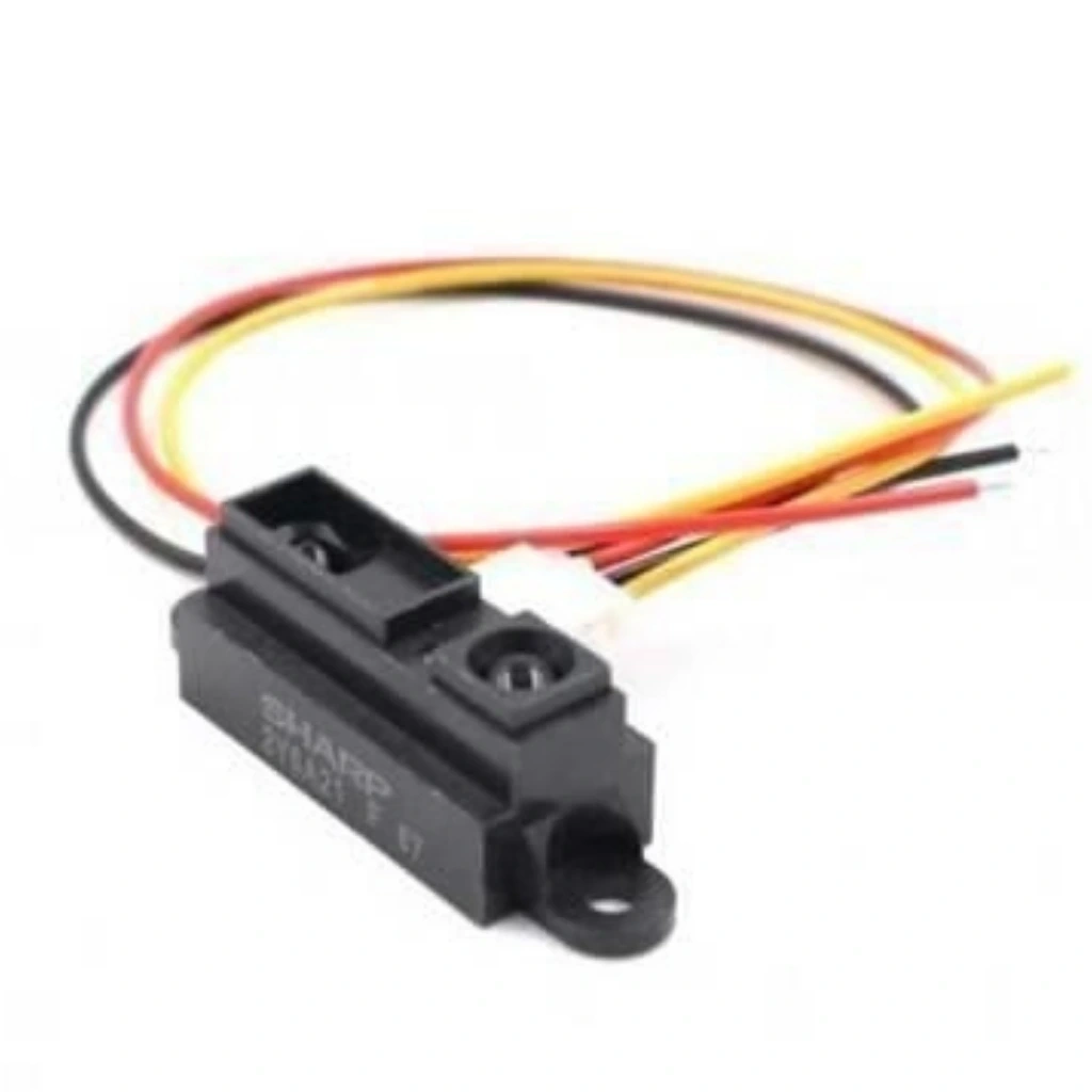 Sharp GP2Y0A21YK0F, 10 cm ile 80 cm aralığında mesafe ölçümü yapabilen yüksek hassasiyetli analog sensördür. Kızılötesi ışık yayan verici ve alıcı yapısı sayesinde karanlık ortamlarda bile etkin şekilde çalışır. Özellikle robotik uygulamalarda nesne algılama ve çarpışma önleme amacıyla yaygın olarak tercih edilir.