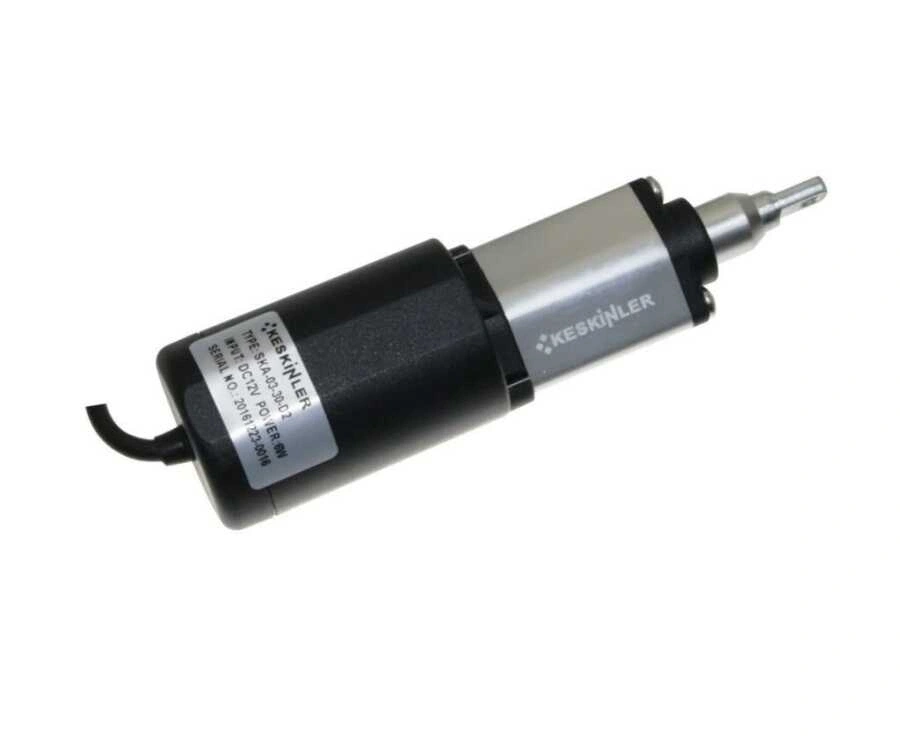 Endüstriyel uygulamalar için geliştirilmiş özel mini lineer aktüatör motordur. Özellikleri; Çalışma Voltajı : 12V DC Çalışma Gücü : 6 W Yük Kapasitesi(Tork): 200N Uzunluk: 30 mm Motor Çapı ( Siyah Kısım ) : 40 mm.