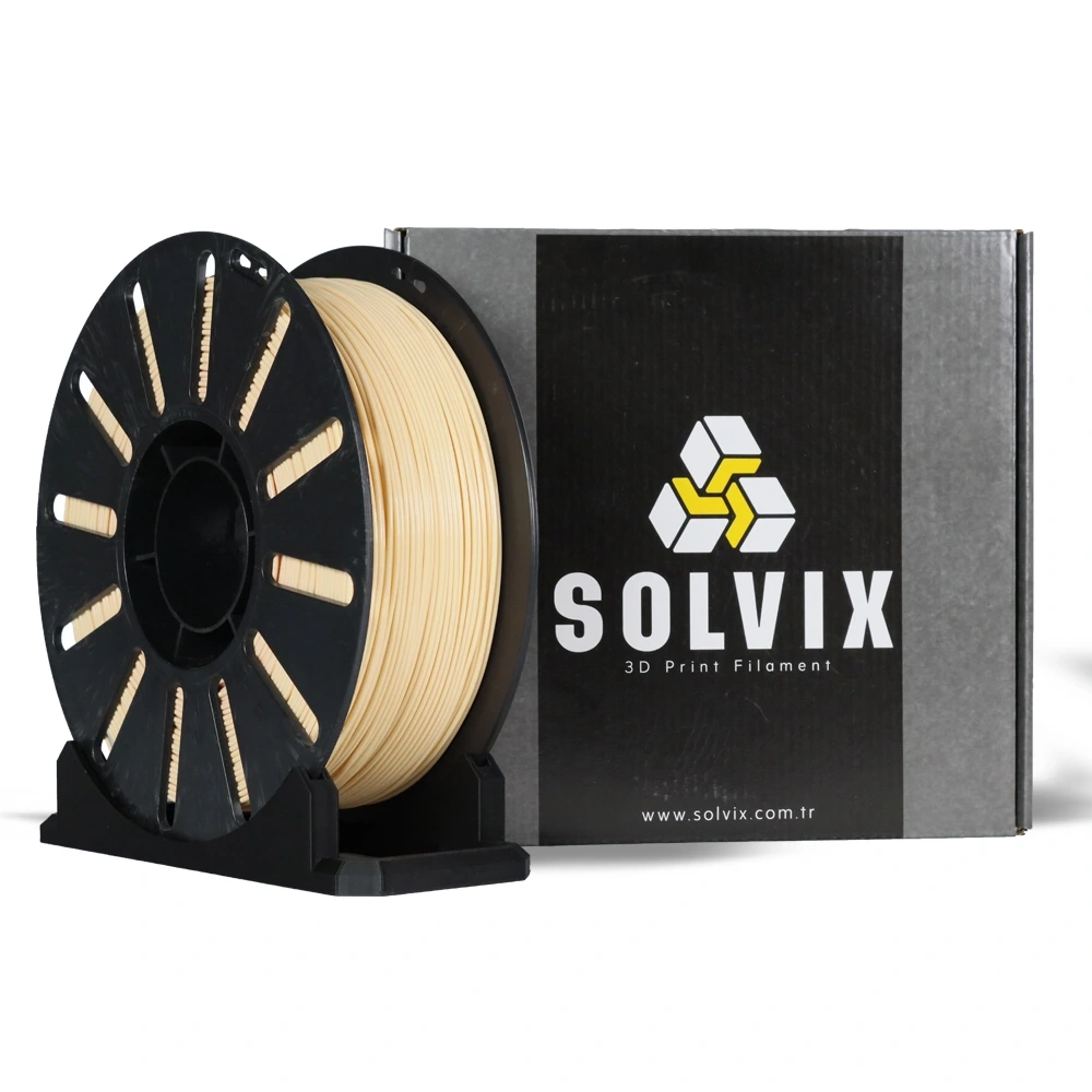Solvix Krem PLA+PHA Premium Filament 1.75mm 1 kg, standart PLA'dan daha dayanıklı ve esnek olan, PHA katkılı özel formülasyona sahip yüksek kaliteli bir 3D yazıcı filamentidir. Zengin Krem tonu ile ahşap görünümlü modeller, heykelcikler ve dekoratif objeler için ideal bir seçimdir.