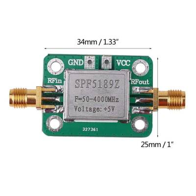 SPF5189Z RF, 50-4000 MHz aralığında çalışan düşük gürültülü bir RF Amplifikatör modülüdür. Düşük gürültü figürüne sahiptir ve çoğunlukla çok çeşitli radyo alıcıları için yüksek frekanslı veya orta frekanslı bir ön yükseltici olarak kullanılır ve ayrıca oldukça hassas elektronik algılama cihazlarının devrelerini yükseltir. Zayıf bir sinyalin yükseltilmesi durumunda, amplifikatörün kendi gürültüsü çok önemlidir, bu nedenle çıkışın sinyal-gürültü oranını iyileştirmek için onu azaltmak gerekir.