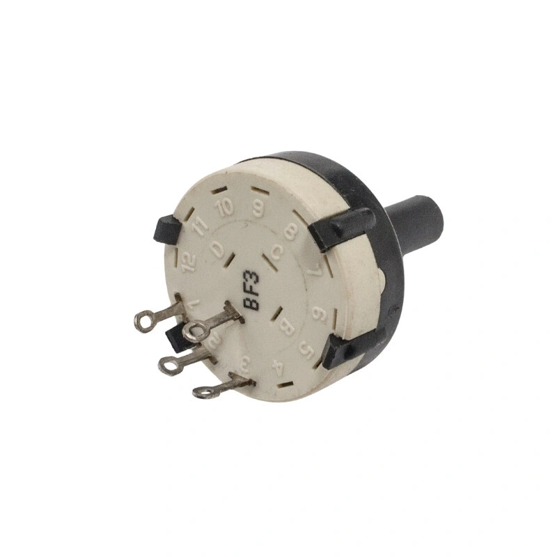 SR2611F-0103-21F5B-D8-N 26mm 3 Konumlu Rotary Switch - Komitatör SR2611F-0103-21F5B-D8-N 26mm 3 Konumlu Rotary Switch - Komitatör, 26mm çapa sahip, 3 konumlu bir nevi ayarlanabilir potansiyometredir.Birden çok farklı devreyi kontrol etmede kullanılır. Özellikler Max. Voltaj: 125VAC Max. Akım: 0.3A Kontak Direnci: 50m Ohm max. Mekanik Ömrü: 10.000 dönüş Mil Çapı: 6.3mm Mil Uzunluğu: 13mm Boyut: 26x10.5mm (Mil Hariç).