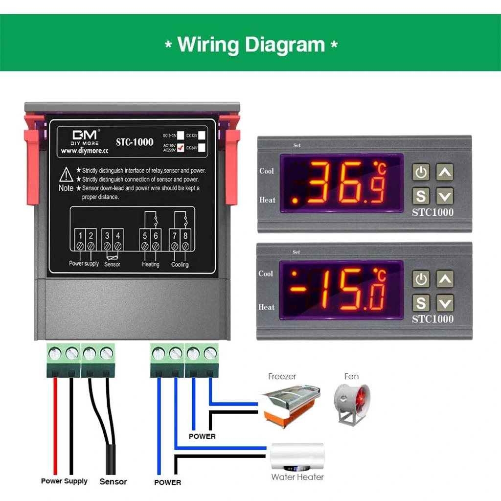 STC-1000 dijital termostat, hassas sıcaklık kontrolü sağlayan kompakt ve kullanışlı bir sıcaklık kontrol cihazıdır. Geniş LCD ekranı sayesinde mevcut sıcaklık değeri ve ayarlanan hedef değer aynı anda görüntülenebilir.