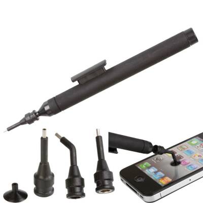 El tipi vakum kalemidir. Ürün içeriğinde 6 adet vakum başlığı ve düz ve yan olmak üzere iki adet bağlantı aparatı bulunmaktadır. Kalem üzerinde bulunan butona basılarak hava dışarı itilir, tutulmak istenen yüzeye vakum ucu yapıştırılır ve düğmeden elimizi çekeriz. Böylece vakum ucu istenen yüzeye yapışır. Ürün antistatiktir. Arka kısmında bir saklama haznesi bulunmaktadır.