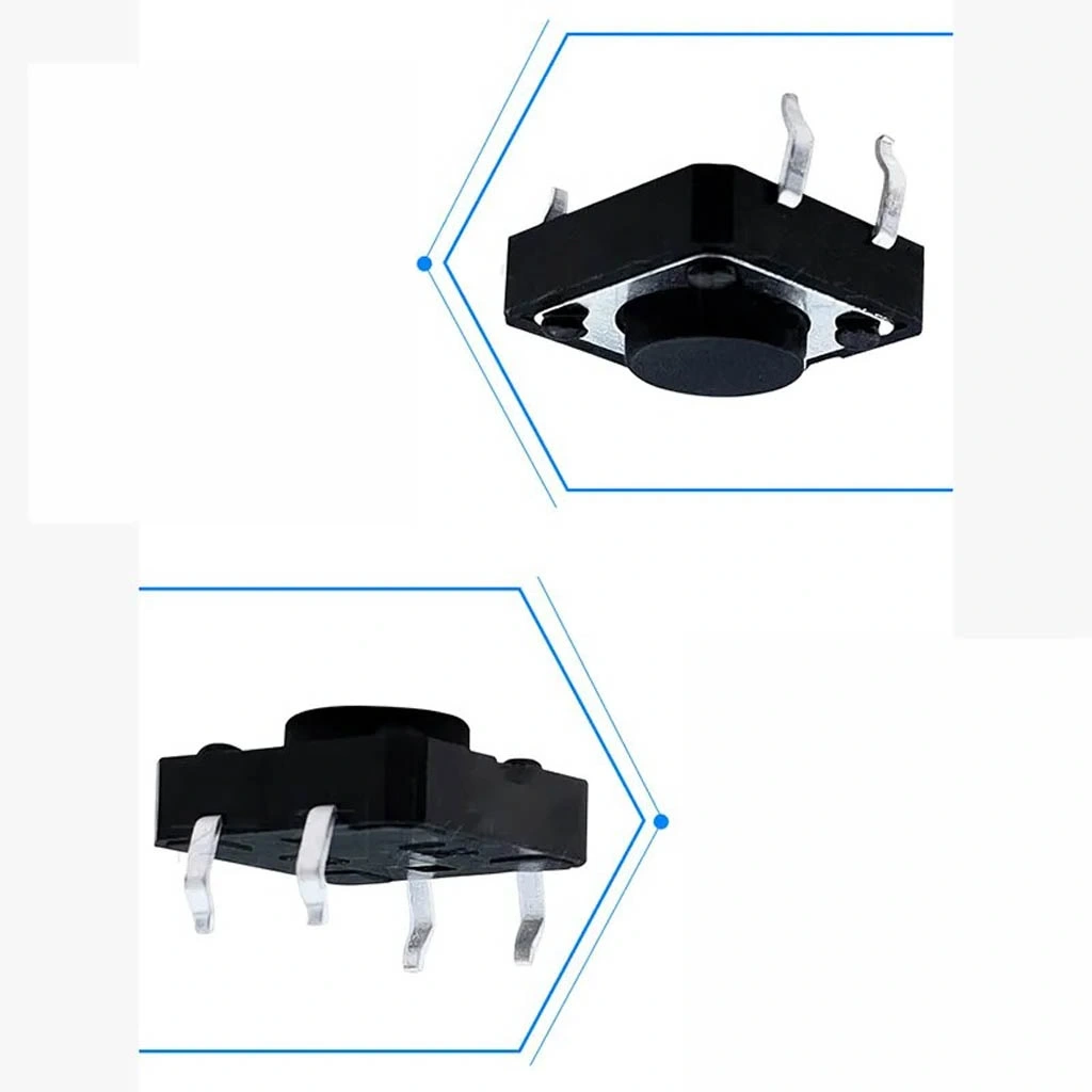 Tact Switch, yaygın olarak kullanılan bir tür düğme anahtarıdır ve elektronik cihazlarda kullanıcıların tuşlara basma eylemini algılamak için tasarlanmıştır. 12x12x4.3mm boyutlarındaki bu tür, kompakt ve kullanımı kolay bir yapıya sahiptir.