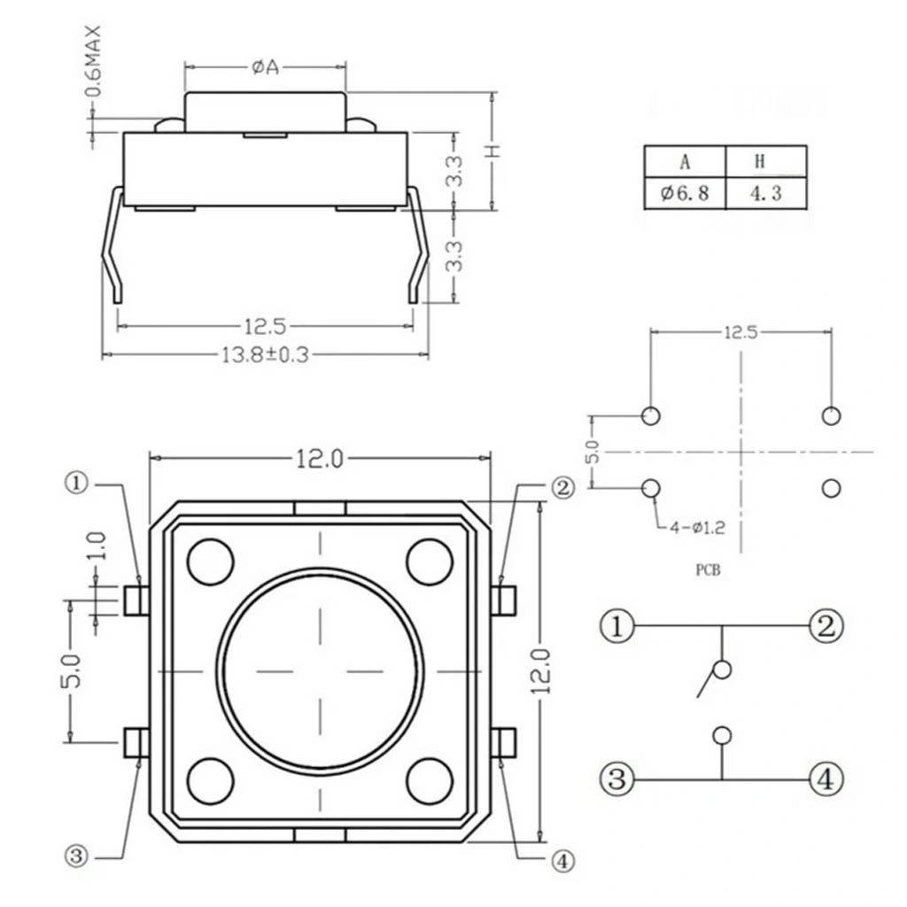 Tact Switch Tact Buton 12x12x4.3mm, düşük profil yapısı ile özellikle dar alan ve yükseklik sınırlaması olan elektronik projelerde ideal çözüm sunar. Hem hobi projelerinde hem de ticari ürünlerde yaygın kullanım alanları vardır.
