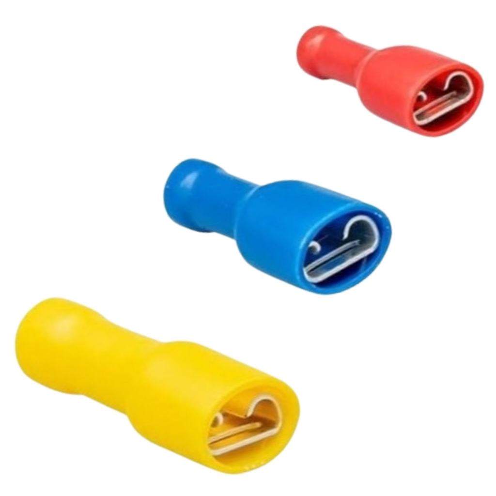 GFFD-1638 tam izoleli dişi faston kablo ucu, 0.50 mm² ile 1.50 mm² arası kablolar için güvenli ve hızlı bağlantı çözümü sunar. PVC izolasyonu sayesinde kısa devre riskini en aza indirir ve kullanıcıya maksimum güvenlik sağlar. Hızlı bağlantı ve sökme gerektiren devrelerde yaygın olarak kullanılır.