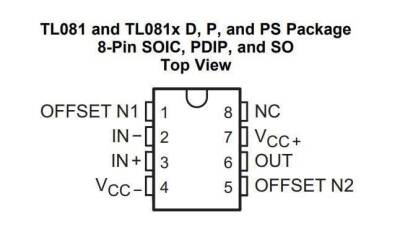 TL08xx JFET girişli işlemsel amplifikatör ailesi, daha önce geliştirilmiş herhangi bir işlemsel amplifikatör ailesinden daha geniş bir seçim sunmak üzere tasarlanmıştır. Bu JFET girişli işlemsel amplifikatörlerin her biri, monolitik entegre bir devrede iyi uyumlu, yüksek Voltajlı JFET ve bipolar transistörler içerir. Cihazlar yüksek dönüş oranları, düşük giriş yanlılığı ve ofset akımları ve düşük ofset Voltajı sıcaklık katsayısına sahiptir.