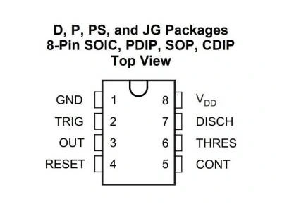 TLC555, TI LinCMOS™ işlemi kullanılarak üretilen monolitik bir zamanlama devresidir. Zamanlayıcı, CMOS, TTL ve MOS mantığı ile tam uyumludur ve 2MHz'e kadar olan frekanslarda çalışır. Yüksek giriş empedansı nedeniyle bu cihaz, NE555 tarafından kullanılanlardan daha küçük zamanlama kapasitörleri kullanır. Sonuç olarak, daha doğru zaman gecikmeleri ve salınımlar mümkündür. Güç tüketimi, tüm güç kaynağı Voltajı aralığında düşüktür.