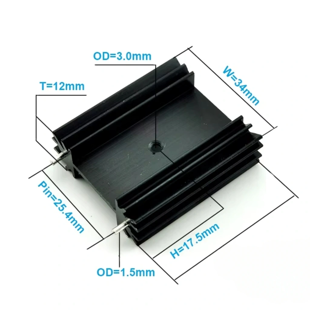 To-247 Metal Soğutucu Heatsink 25x34x12mm'nin detaylı teknik özellikleri aşağıda listelenmiştir.
