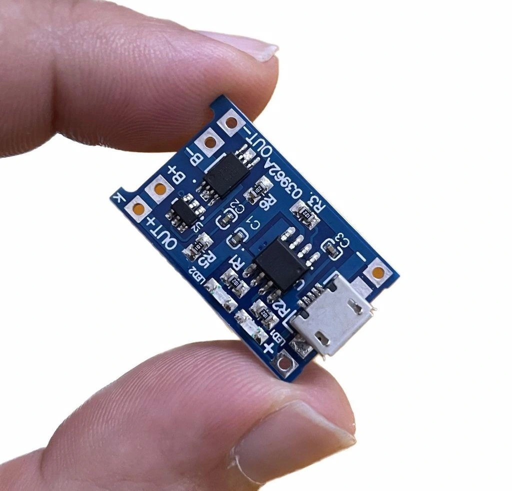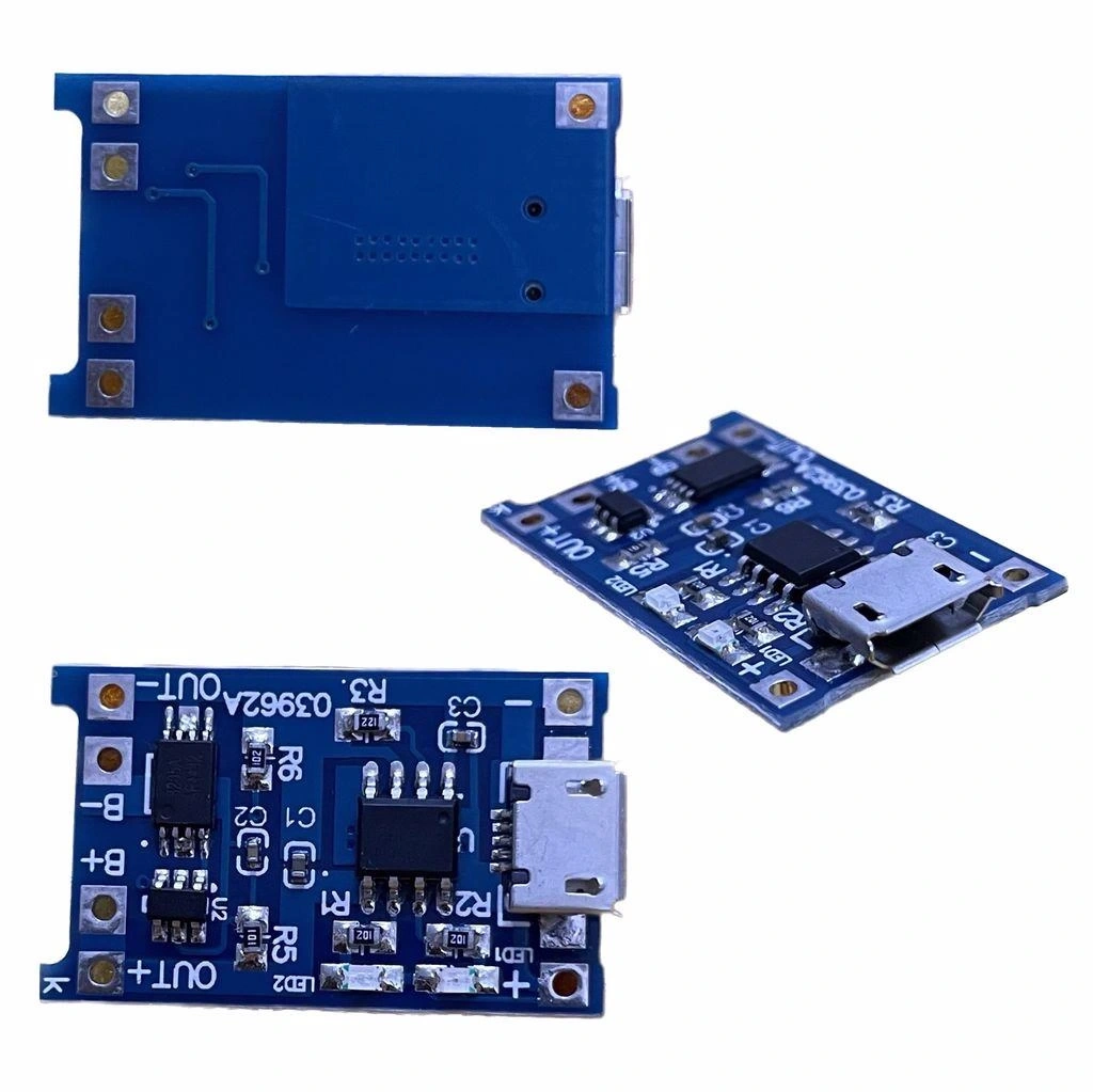 TP4056 Micro USB Pil Şarj Devresi, lityum iyon ve lityum polimer pilleri güvenle şarj etmek için tasarlanmış kompakt bir modüldür. Entegre koruma devreleri sayesinde pilleri aşırı şarj, aşırı deşarj ve kısa devrelerden korur.