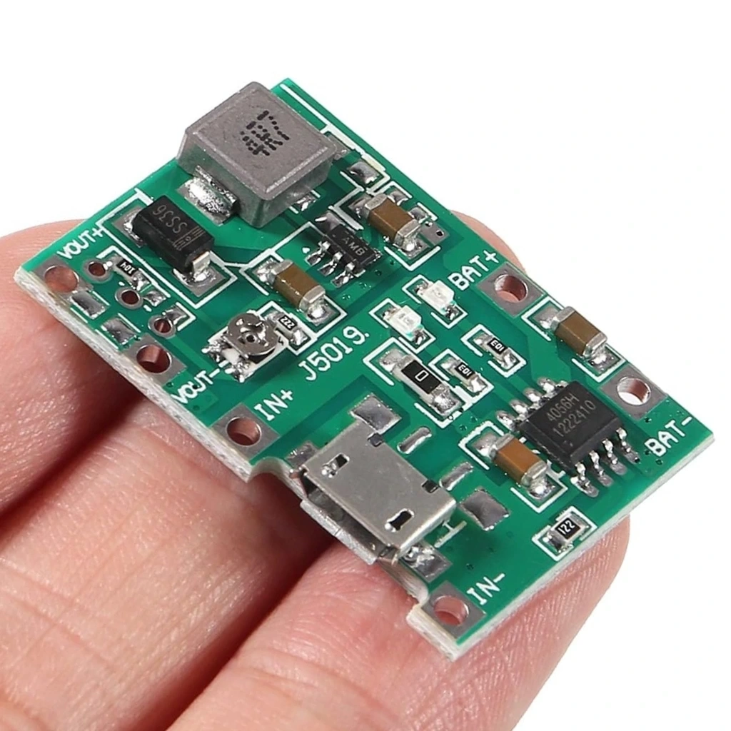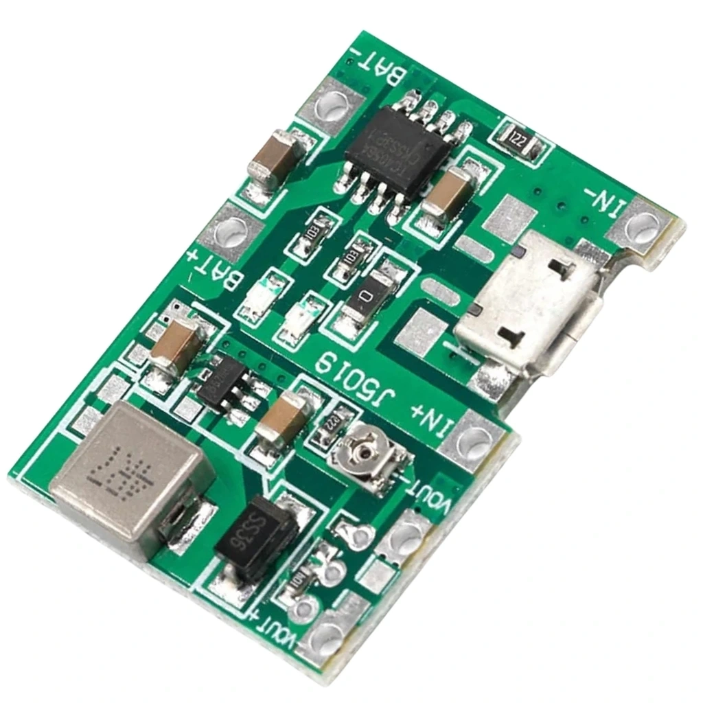 TP4056 Pil Şarj ve Voltaj Yükseltici Modülü, tek hücreli 3.7V lityum iyon (Li-ion) veya lityum polimer (LiPo) pillerin güvenli bir şekilde şarj edilmesi ve voltajlarının yükseltilerek kullanılabilmesi için tasarlanmıştır. Üzerindeki TP4056 şarj entegresi, sabit akım / sabit voltaj (CC/CV) yöntemiyle şarj sağlarken; modülün voltaj yükseltici kısmı, çıkış voltajını 5V gibi sabit değerlere taşıyarak USB cihazları beslemenize olanak tanır. Micro USB girişi ile kolayca bağlantı sağlanır ve dahili koruma devreleriyle güvenli kullanım sunar.