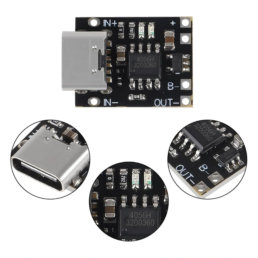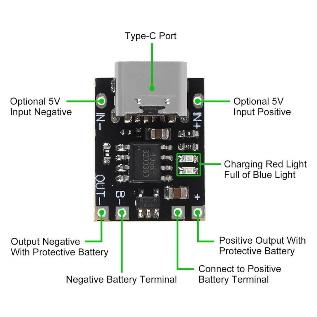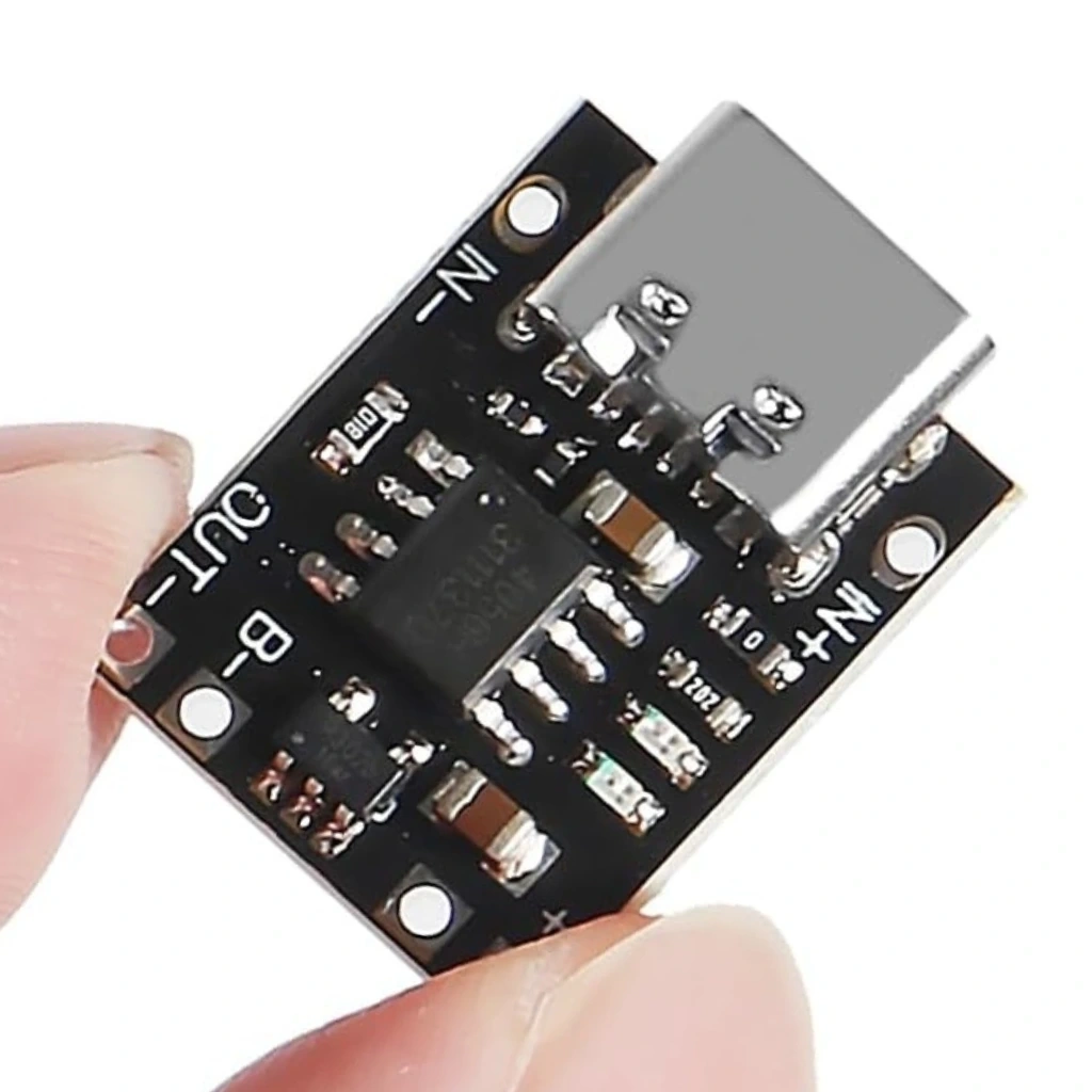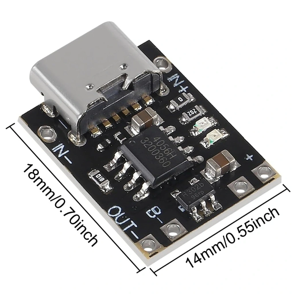 Mini TP4056 Type-C girişli şarj modülü, 3.7V tek hücreli lityum-ion ve lityum-polimer pillerin güvenli bir şekilde şarj edilmesini sağlar. Dahili şarj ve deşarj koruma devresi (protection circuit) sayesinde pilin aşırı şarj, aşırı deşarj ve kısa devreye karşı korunmasına yardımcı olur.