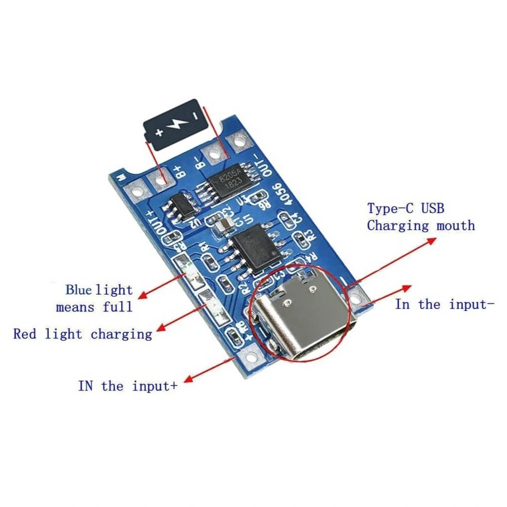 TP4056 Type-C Korumalı 18650 Lipo Pil Şarj Devresi
