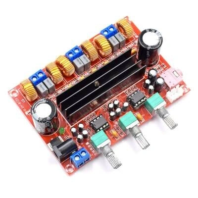 TPA3116 2.1 Amfi Devresi, sağ ve sol kanal için 2x50W, subwoofer çıkışı için ise 100W güçlü ses amplifikasyonu sunan yüksek verimli bir Class-D ses yükseltici modülüdür.