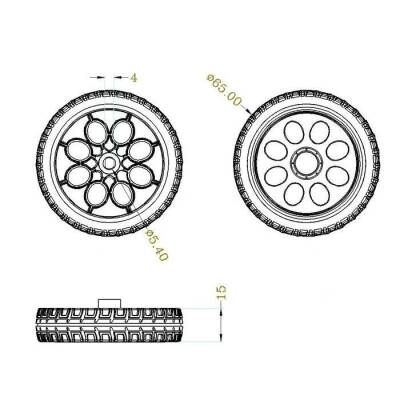 Robotik projelerde en çok tercih edilen motor olan Sarı renkli TT motorlarla doğrudan uyumlu tekerlek. mBot tekerleği yada Adafruit tekerlek olarakta bilinmektedir. Dış çağı 65mm kalınlığı 15mm\\\'dir.