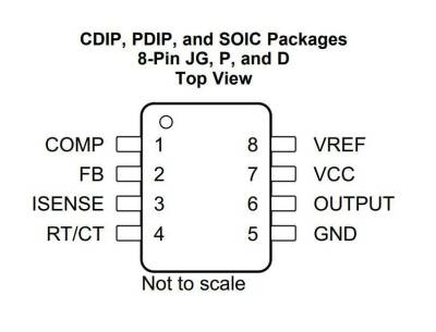 UCx84x serisi kontrol entegre devreleri, minimum sayıda harici bileşenle çevrimdışı veya DC-DC sabit frekanslı akım modu kontrol şemalarını uygulamak için gereken özellikleri sağlar. Dahili olarak uygulanan devreler, 1 mA\\\'dan daha düşük bir başlatma akımına sahip bir düşük gerilim kilitleme (UVLO) ve hata amplifikatör girişinde doğruluk için kesilmiş hassas bir referans içerir. Diğer dahili devreler, mandallı çalışmayı sağlamak için mantık, akım sınır kontrolü de sağlayan bir darbe genişliği modülasyonu (PWM) karşılaştırıcısı ve yüksek tepe akımını kaynaklamak veya batırmak için tasarlanmış bir totem-kutup çıkış aşamasını içerir. N-kanal MOSFET\\\'leri sürmek için uygun olan çıkış katı, kapalı durumda olduğunda düşüktür.