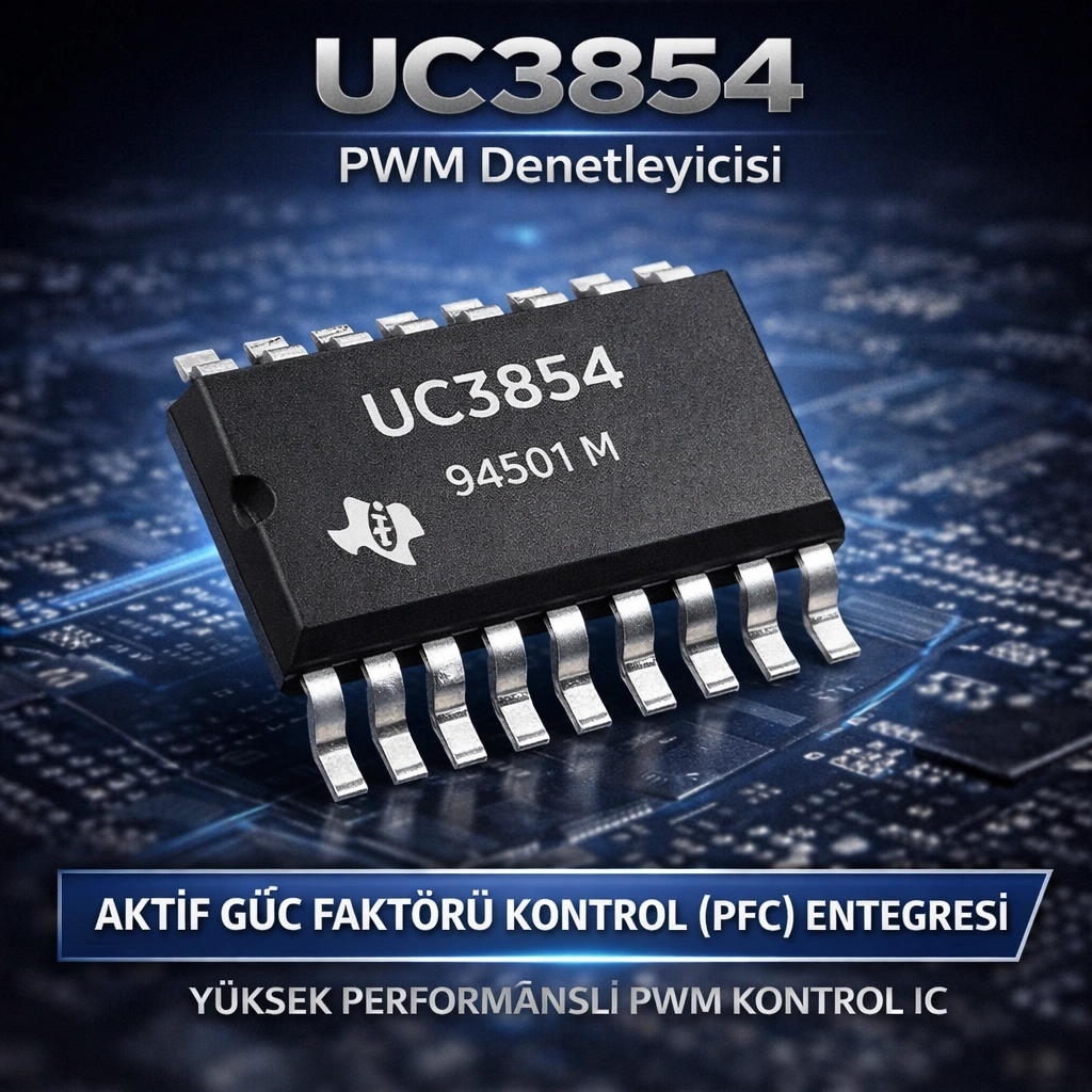 UC3854 PWM Denetleyicisi, aktif güç faktörü düzeltme (Active Power Factor Correction – PFC) uygulamaları için tasarlanmış yüksek performanslı bir kontrol entegresidir. Özellikle anahtarlamalı güç kaynakları (SMPS), endüstriyel güç sistemleri ve yüksek verimli AC-DC dönüştürücülerde yaygın olarak kullanılmaktadır.