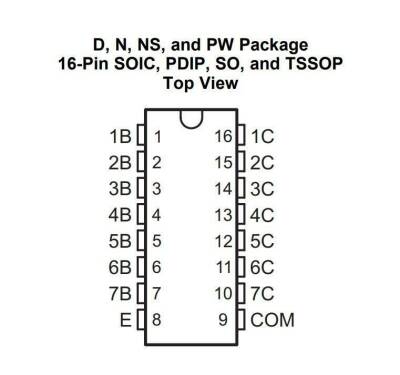 ULN2001, ULN2002, ULN2003 ve ULN 2004, her biri ortak yayıcılara sahip yedi açık kolektör Darlington çifti içeren yüksek Voltajlı, yüksek akım Darlington dizileridir. Her kanal 500 mA olarak derecelendirilmiştir ve 600 mA\\\'lık pik akımlara dayanabilir. Endüktif yük sürüşü için bastırma diyotları dahil edilmiştir ve girişler, kart yerleşimini basitleştirmek için çıkışların karşısında sabitlenmiştir.