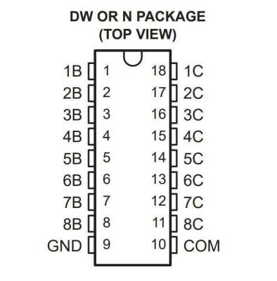 ULN2803 ,50V 500 mA Darlington transistör dizisidir. Cihaz, endüktif yükleri değiştirmek için ortak katot kelepçe diyotlu yüksek Voltaj çıkışlarına sahip sekiz NPN Darlington çiftinden oluşur. Her bir Darlington çiftinin toplayıcı akım değeri 500 mA\\\'dir. Daha yüksek akım kapasitesi için Darlington çiftleri paralel bağlanabilir.