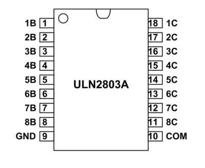 ULN2803 ,50V 500 mA Darlington transistör dizisidir. Cihaz, endüktif yükleri değiştirmek için ortak katot kelepçe diyotlu yüksek Voltaj çıkışlarına sahip sekiz NPN Darlington çiftinden oluşur. Her bir Darlington çiftinin toplayıcı akım değeri 500 mA'dir. Daha yüksek akım kapasitesi için Darlington çiftleri paralel bağlanabilir.