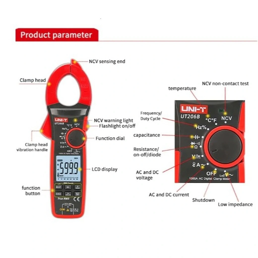 Geniş pens açıklığı ile kalın kablolarda ve baralarda kolayca ölçüm yapma imkanı sağlayan UT206B, endüstriyel elektrik sistemleri, motor kontrol devreleri ve yüksek güç tüketen ekipmanların bakım ve arıza tespitinde ideal bir cihazdır. Ölçüm ve test aletleri arasında yüksek kapasitesi ve çeşitli ölçüm fonksiyonları ile öne çıkar.