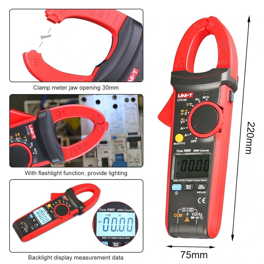 Dayanıklı yapısı ve ergonomik tasarımı ile tek elle kullanımı mümkün kılan bu pensampermetre, akım, gerilim, direnç, kapasitans ve sıcaklık gibi çeşitli elektriksel parametreleri ölçme kabiliyetine sahiptir. Ölçüm ve test aletleri arasında çok yönlü özellikleri ile öne çıkan UT216C, elektrik tesisatı sorun giderme ve bakım çalışmaları için vazgeçilmez bir araçtır.
