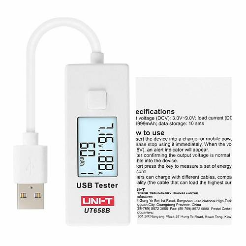 UNI-T UT658B Dijital USB Güç Ölçer, USB cihazlarının güç tüketimini hassas şekilde ölçmek için tasarlanmış profesyonel bir test cihazıdır. USB Type-A ve Type-C bağlantıları ile çeşitli cihazların voltaj, akım, güç, kapasite ve enerji tüketimlerini gerçek zamanlı olarak ölçebilir.
