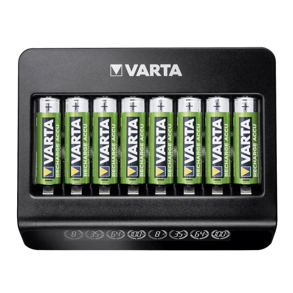 Varta 57681, AA ve AAA pilleri şarj etmek için tasarlanmış, 8 yuvalı bir pil şarj cihazıdır. Gelişmiş LCD ekranı sayesinde her bir pilin şarj durumu kolayca izlenebilir.