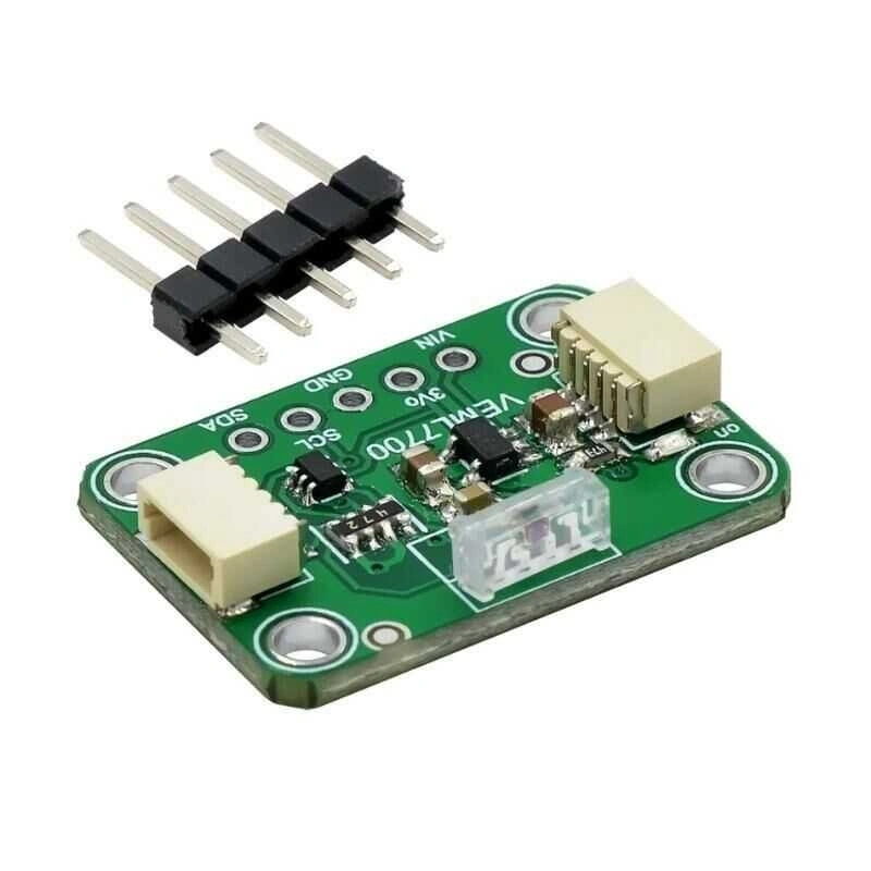 VEML7700 Ortam Işık Sensörü VEML7700 ortam ışık sensörü, herhangi bir mikrodenetleyiciye kolayca eklenebilen güzel ve basit bir luks sensörüdür. Çoğu ışık sensörü sadece daha parlak/karanlık bir ortam ışığı için bir sayı verir. VEML7700, ışık için bir SI birimi olan lüksü hesaplayarak hayatınızı kolaylaştırır. Birimlerle uğraşmadığınız için birden fazla sensör arasında daha tutarlı okumalar alırsınız. Sensör, 0 lüks ile yaklaşık 120k lüks arasında ambiyans ışığı tespiti için 16 bit dinamik aralığa sahiptir ve 0.0036 lx/ct çözünürlüğe sahip yazılım ayarlı kazanç ve entegrasyon süreleriyle birlikte gelir. Ürün üzerinde bağlantı pinlerinin dışında lehim yapmak istemeyenler için JST-SH bağlantı konnektör girişi bulunmaktadır. Bağlantı: VCC: 2.7V-5V GND: Toprak SCL: I2C clock pin SDA: I2C data pin 3Vo: Bu, voltaj regülatöründen gelen 3.3V çıkışıdır, isterseniz 100mA'e kadar çıkış alabilirsiniz..