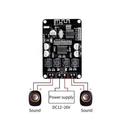 VHM-313, Stereo çift kanal bluetooth özellikli bir amfi kartıdır. Bu amplifikatör 2x15w güç çıkışına sahiptir. 4,6 yada 8 ohm hoparlörle kullanıma uygundur. Üzerinde TPA3110 entegresi bulunan bu devre aynı zamanda ses girişi için bir jack girişine sahiptir.