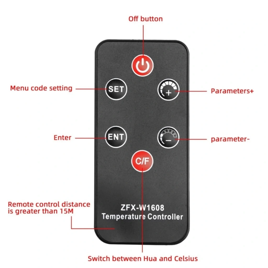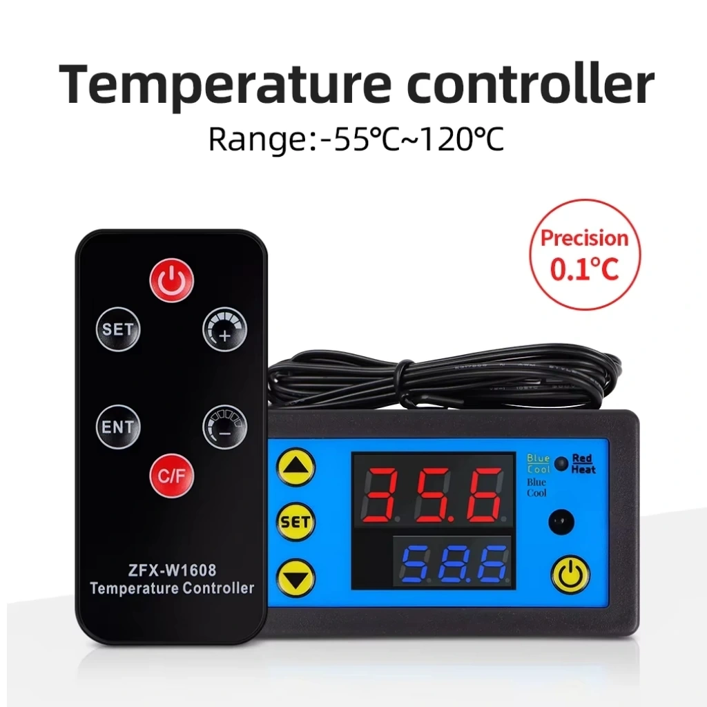W3231 ZFX-W1608 Dijital Termostat, 12V DC çalışma gerilimi ile hassas sıcaklık kontrolü sağlayan, uzaktan kumanda özellikli gelişmiş bir kontrol cihazıdır. NTC sıcaklık sensörü ile -50°C ile 110°C arasında geniş bir aralıkta çalışabilen bu termostat, hem ısıtma hem de soğutma uygulamalarını kontrol edebilir.
